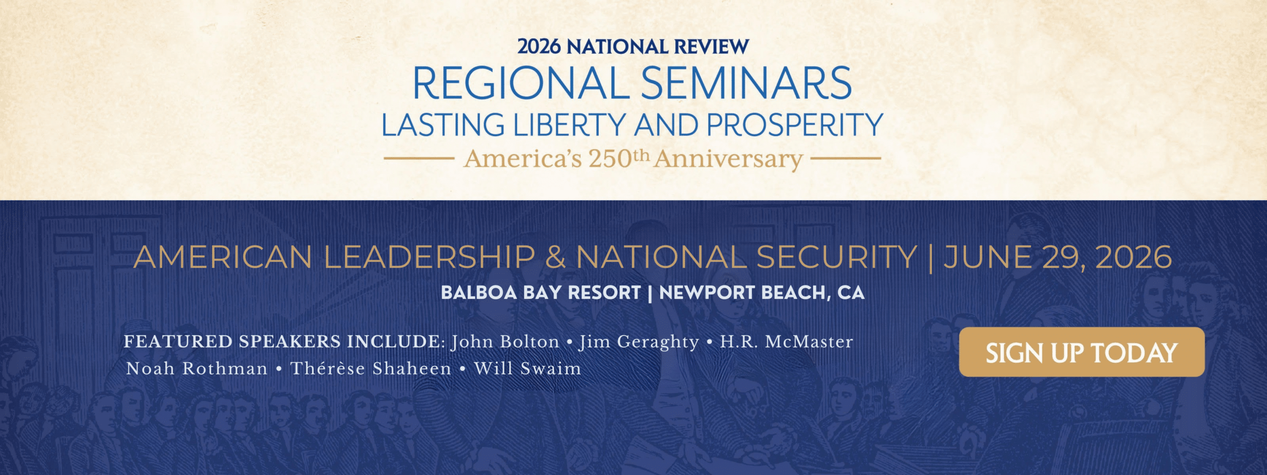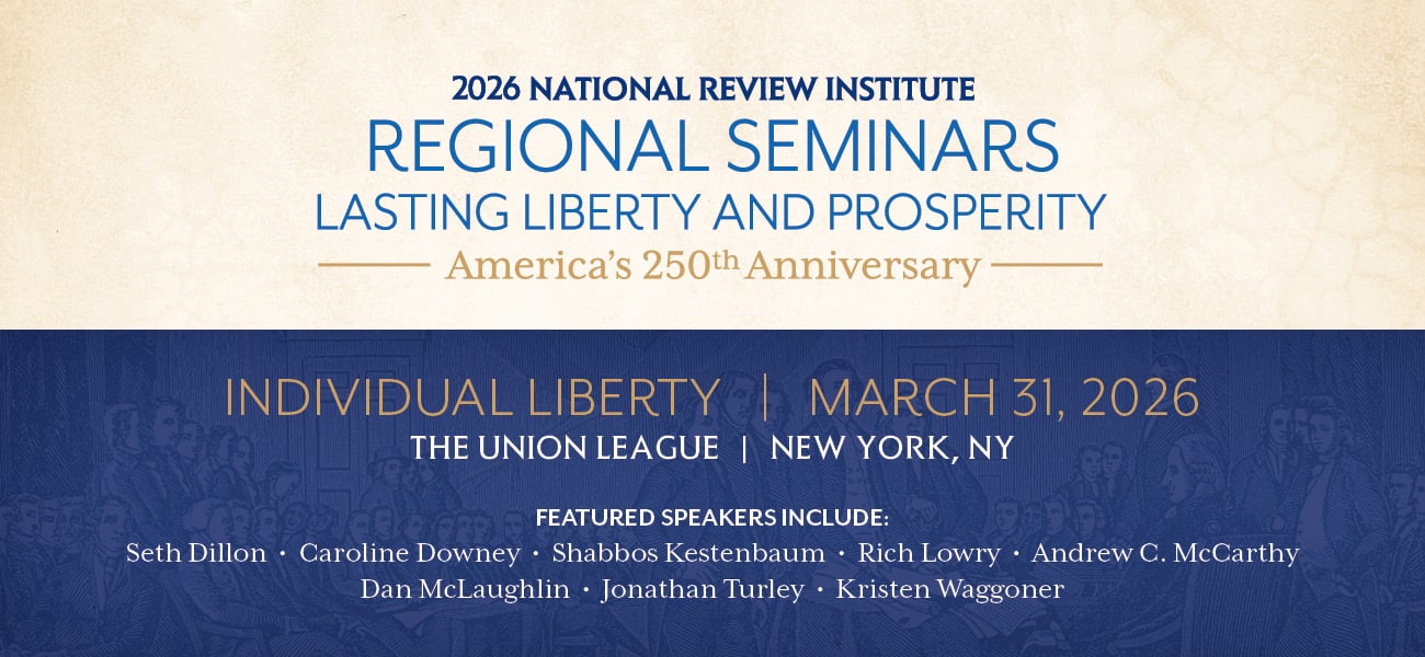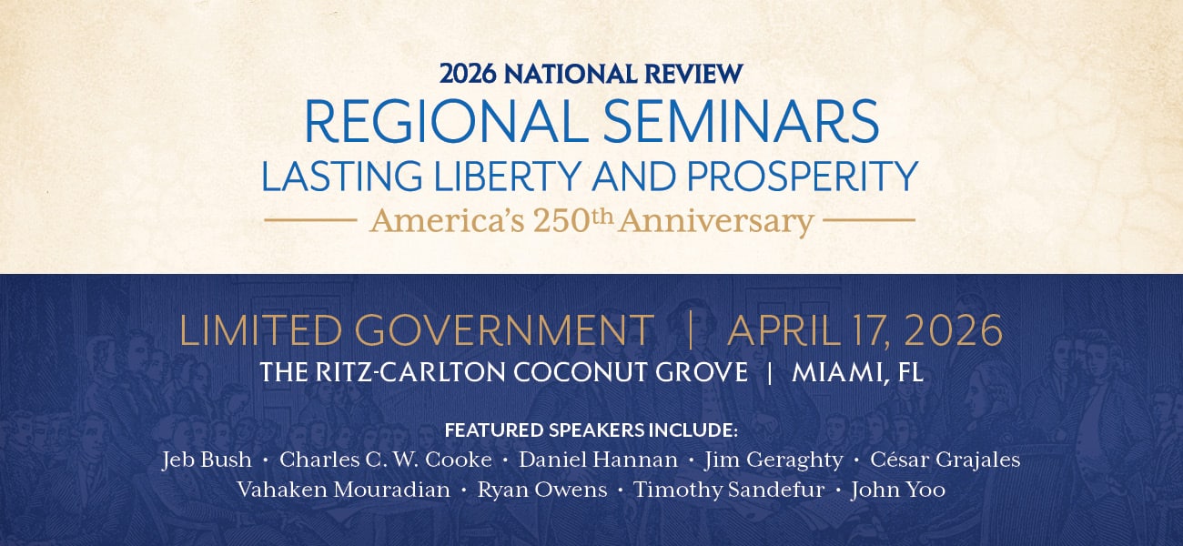 National Review’s 2026 regional event series will celebrate the 250th anniversary of the founding of our nation, the signing of the Declaration of Independence, and the principles that have made America the greatest nation on earth. The American conservative movement exists to conserve these principles—and National Review has been at the forefront of that movement since its inception.